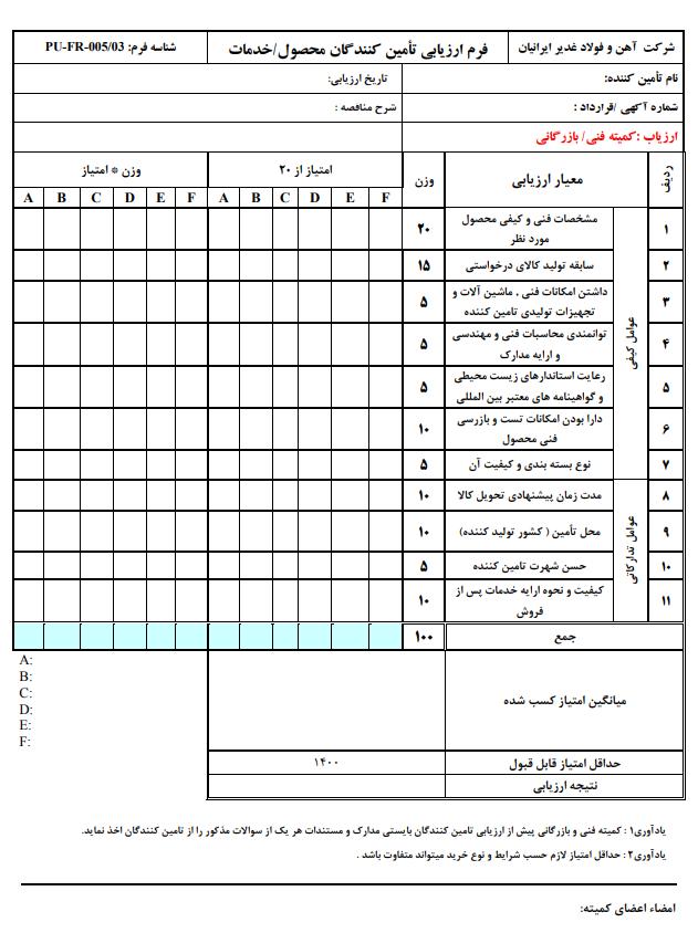 *امتیازات فنی کمتر از 1400، طبق فرم پیوست، از پیشنهادهای فنی در حال بررسی حذف خواهند شد.